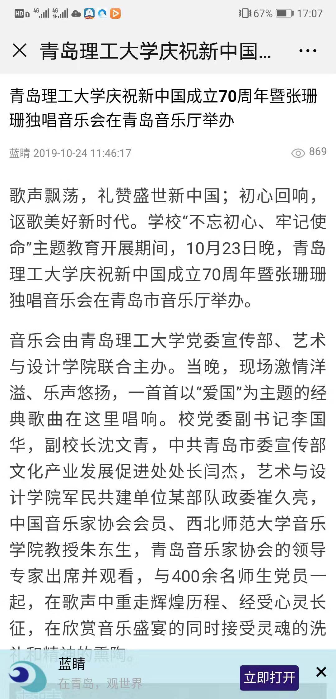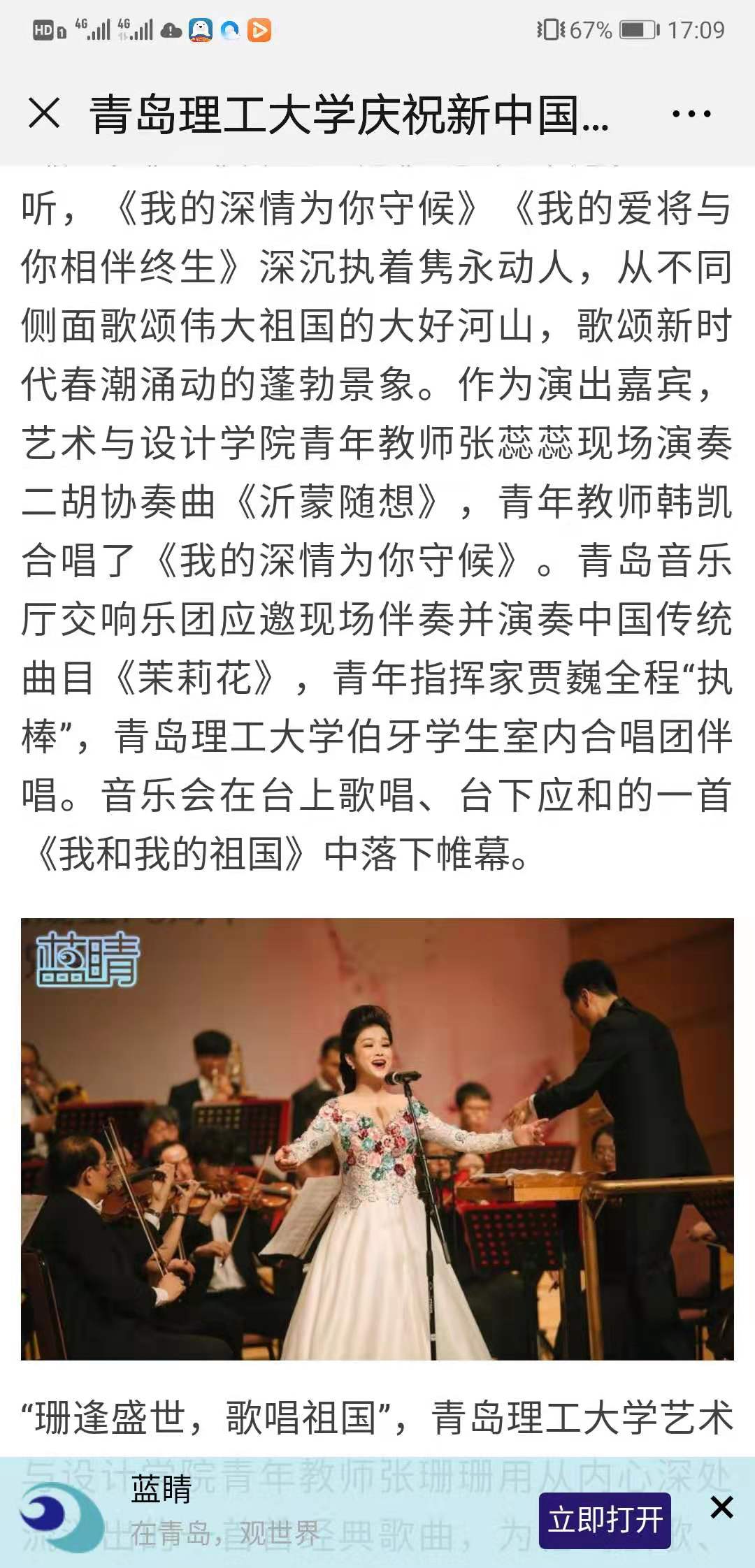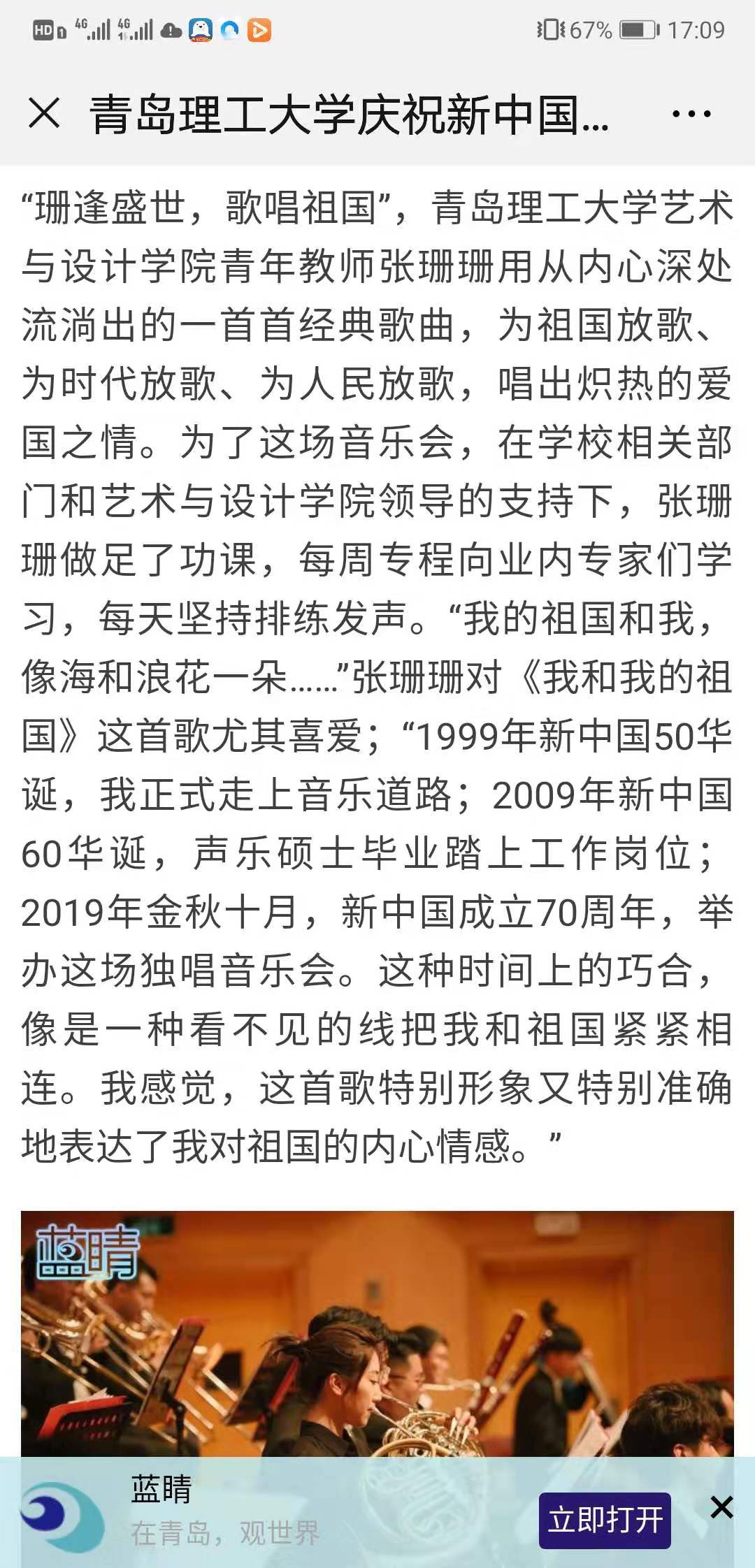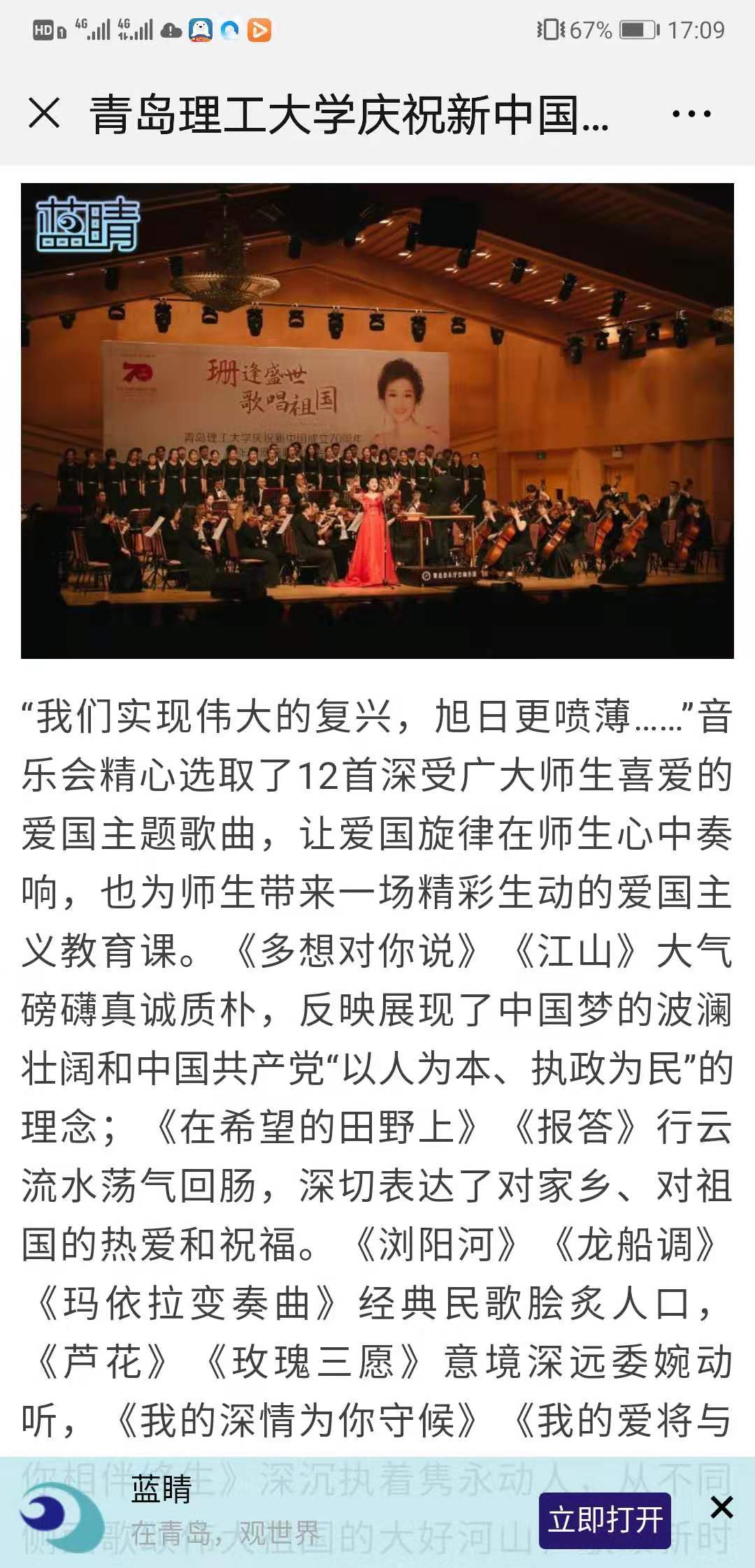 下一条:青岛财经网:庆祝新中国成立70周年青理工张珊珊独唱音乐会举办