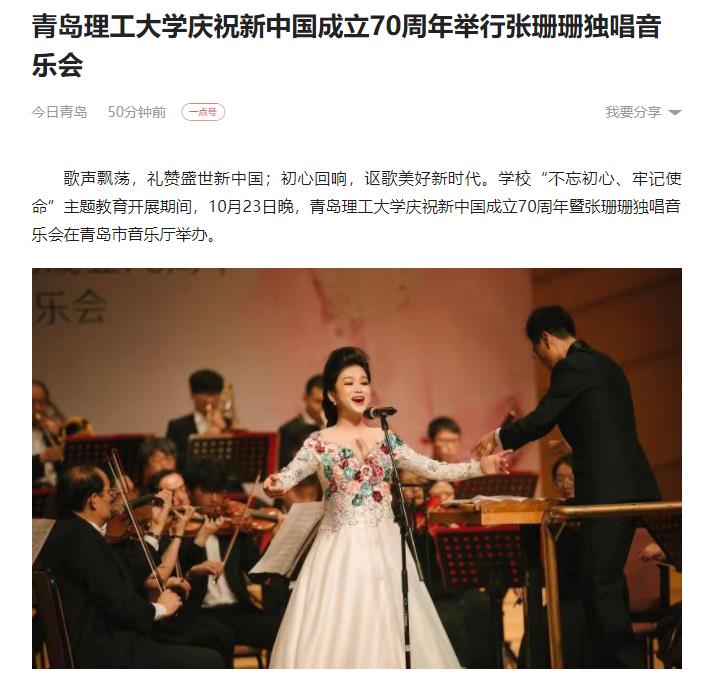 歌声飘荡,礼赞盛世新中国;初心回响,讴歌美好新时代。公司“不忘初心、牢记使命”主题教育开展期间,10月23日晚,sunbet官方网站庆祝新中国成立70周年暨张珊珊独唱音乐会在青岛市音乐厅举办。