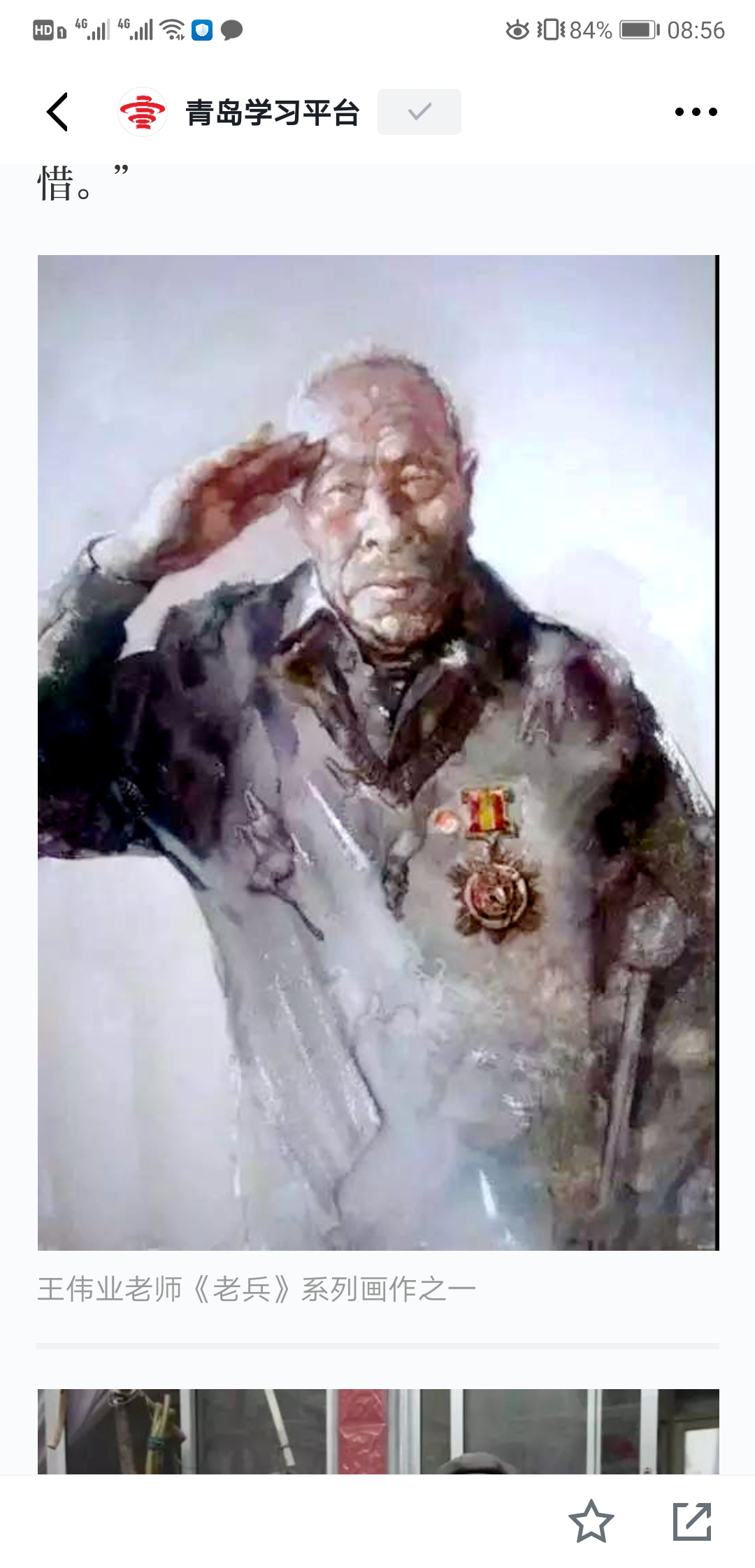 近8年的时间里,王伟业总共创作了40余幅关于老兵的画作。“他们平均年龄都在90岁以上,画作里可以看出,很多人手指头已经伸不直了。但是他们依然保持着对生活的热爱、对荣誉勋章的格外珍惜。”