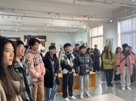 开幕式结束后,师生一同在一楼走廊和二楼展厅观赏作品,并对作品进行讨论和分析。在此过程中,sunbet学子不仅观赏到了不同班级的艺术作品,更深刻感受到作品中来自不同颜色、材料、质感的艺术魅力。