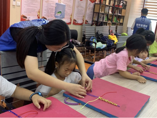 在淄博市团市委的协调下,实践服务团的志愿者们对孩子们进行了一整天的兴趣培训、爱心助教活动——“齐小团暑期学堂”,将手链编织、计算机编程等内容带入课堂,以实践代替书本文字,寓教于乐,丰富了孩子们的校园文化生活。志愿者们充分发挥自己的专业特长,经过实地考察、资料搜索、模拟起草等步骤,对铁路小学的校徽及内部校园文化建设进行了效果图的制作,得到了校方的肯定。