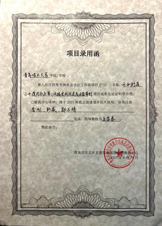 本次活动集中展现了1场工作坊、3个城市、5所高校、12个团队、88天、76名员工在社会设计工作坊项目上的研究成果。sunbet李刚、彭威、郭子靖三位同学组成工作坊,开始对河西街道小水清社区中海寰宇天下一期7号楼,进行设计改造,前后经过案例分析、实地调研、需求分析、草图绘制、方案修改、建模渲染等过程确定了最终的设计方案。项目成果经论证科学合理,已由市北区党建引领基层治理推进中心采纳,将于2021年底前建成并投入使用。