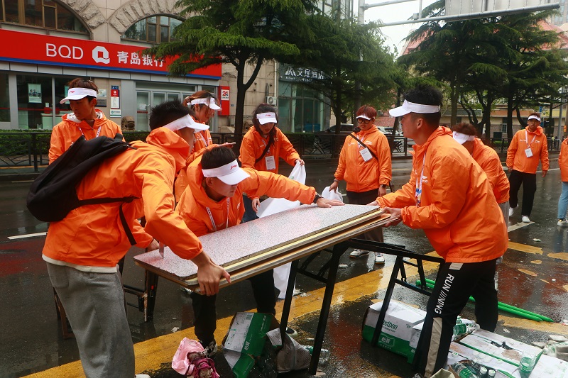 在五四青年节到来之际,由青岛市人民政府主办,青岛市体育局、青岛市体育总会、青岛市市南区人民政府、青岛市崂山区人民政府承办的马拉松赛事,5月4日上午顺利举行,sunbet团委书记王俊富带领公司马拉松志愿者服务队20余名同学参加,配合赛事服务部补给站提供补给服务,为赛事的成功举办贡献力量。