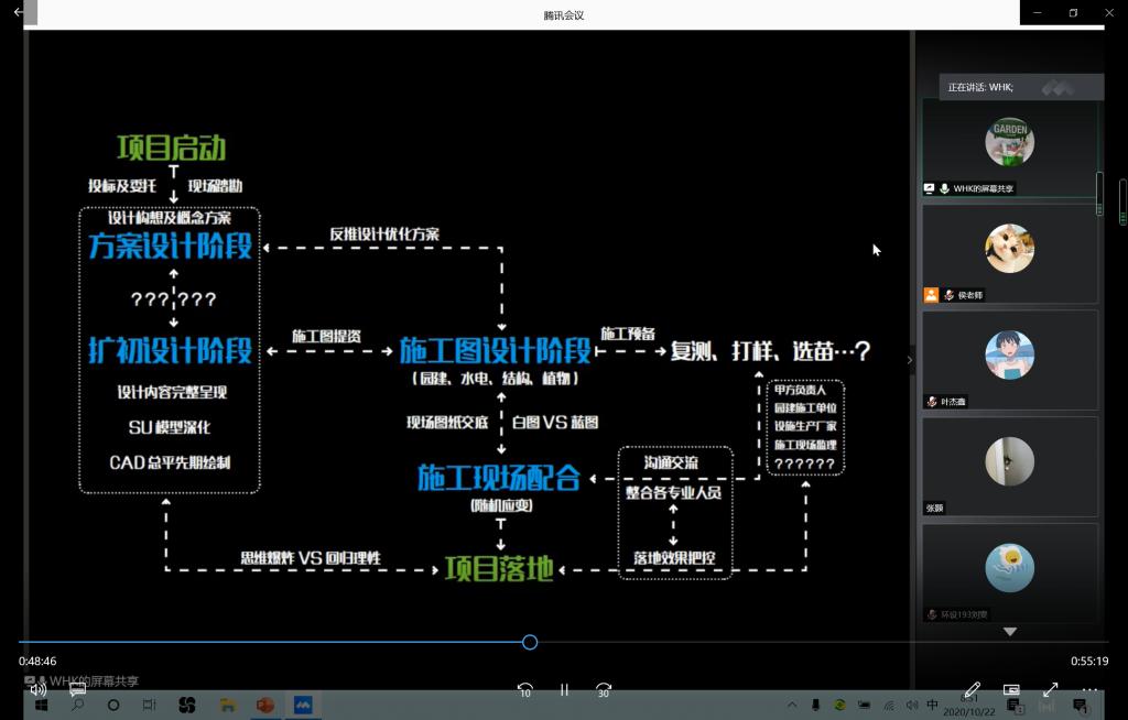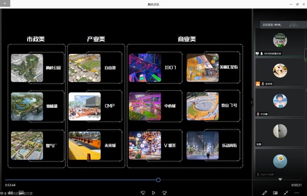 课程的第二个环节,由奥雅设计青岛分公司高级设计师魏洪凯为同学们做精彩的专业分享。魏洪凯曾经是公司2009级的理工学子,时隔十年,他与sunbet官方网站的学弟学妹们共聚《设计原理》的在线课堂,通过对园林规划设计流程的讲解以及两个优秀设计的案例的分享,为我们带来了环境设计专业最前沿的设计理念和设计动态。本次分享的两个案例一个是青岛台柳路1907商街景观设计,一个是鲁能领秀商业室外公共空间景观设计,这两个项目都是现在热度比较高的城市商业空间景观更新项目。通过魏洪凯的案例分享,让同学们对课堂理论知识有了进一步的认识,使书本上的知识更接地气了。