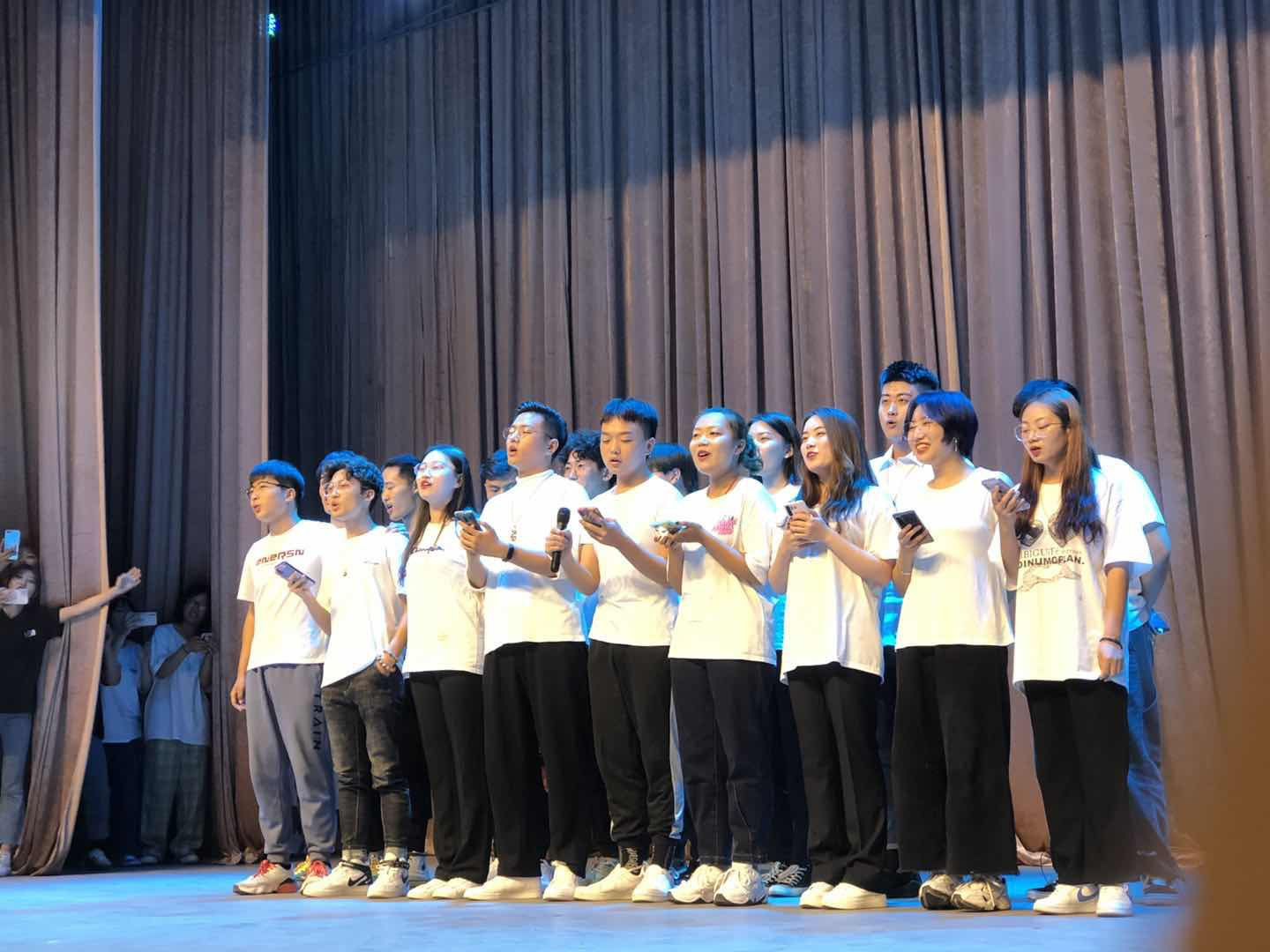 蓝色的裙裳,飘逸的舞姿加上优美的舞曲,全场都沉浸在这唯美的画面里。班助们带来的合唱《后来》这首歌掀起了又一个高潮,他们还未开嗓就已收获了疯狂的尖叫声、呐喊声,当这首歌唱完时,在场新生都有一种意犹未尽、恋恋不舍的感觉,有的人偷偷地留下了感动的泪水。晚会在20级新生辅导员王凯、军训团所有教官、sunbet班助、音乐表演专业等百人合唱的《我和我的祖国》中正式落下帷幕。