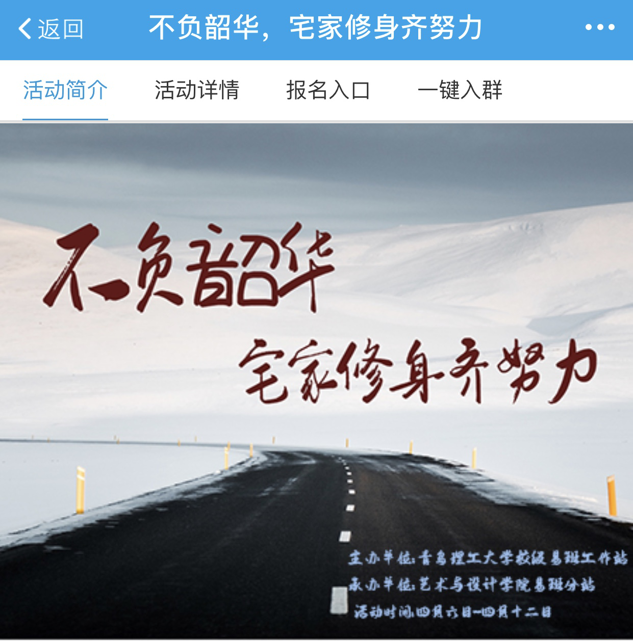 为推进校园文明建设,引导员工养成健康文明的生活习惯和行为方式,全面提高员工自身素质与修养,由校易班发展中心主办、sunbet易班工作分站承办的“文明修身月”主题活动之“不负韶华,宅家修身齐努力”线上分享评选活动于4月20日圆满落下帷幕。