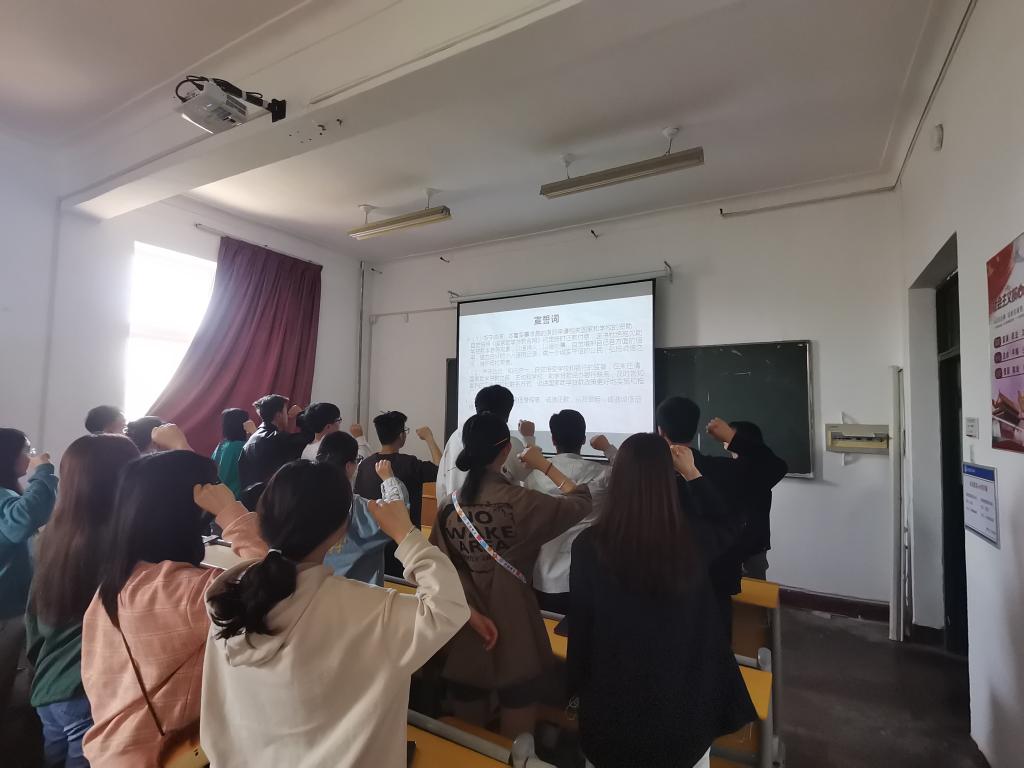 首先,刘芳兵为在场员工讲解了助学贷款还款的相关事项,以及助学贷款毕业确认指导,提醒同学们助学贷款还款时注意事项以及按时还款的重要性和违约后果,加深并强化同学们对助学贷款还款的认识。随后,为增强员工履约意识,在毕业生徐祥志同学的带领下,全体国家助学金贷款毕业生起立举起右手,庄严宣誓诚信还款。