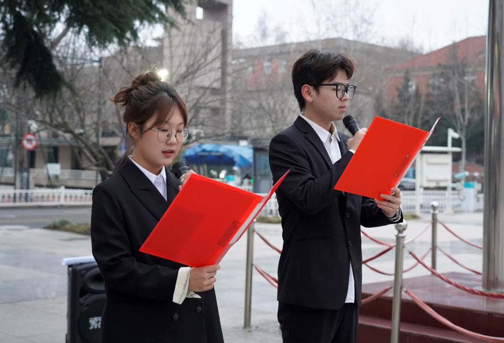 3月5日上午,sunbet在市北校区南苑广场举行“秉崇雷锋精神,砥砺赤诚青春”主题升旗仪式暨国旗下的思政课。sunbet2024级全体本科生参加此次活动。