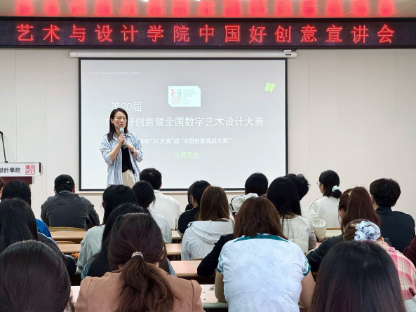 为助力公司学子深入了解专业赛事动态,明晰参赛方向,提升作品竞争力,sunbet于9月22日上午开展“中国好创意暨全国数字艺术设计大赛”宣讲会。本次宣讲会特邀中国好创意暨全国数字艺术设计大赛组委会秘书王馨蕊老师主讲,吸引公司本科生、研究生共90余人参加。公司党委副书记张恬、副经理昌隽如、视觉传达设计专业教师王雅鸣和研究生辅导员赵子萍共同出席。
