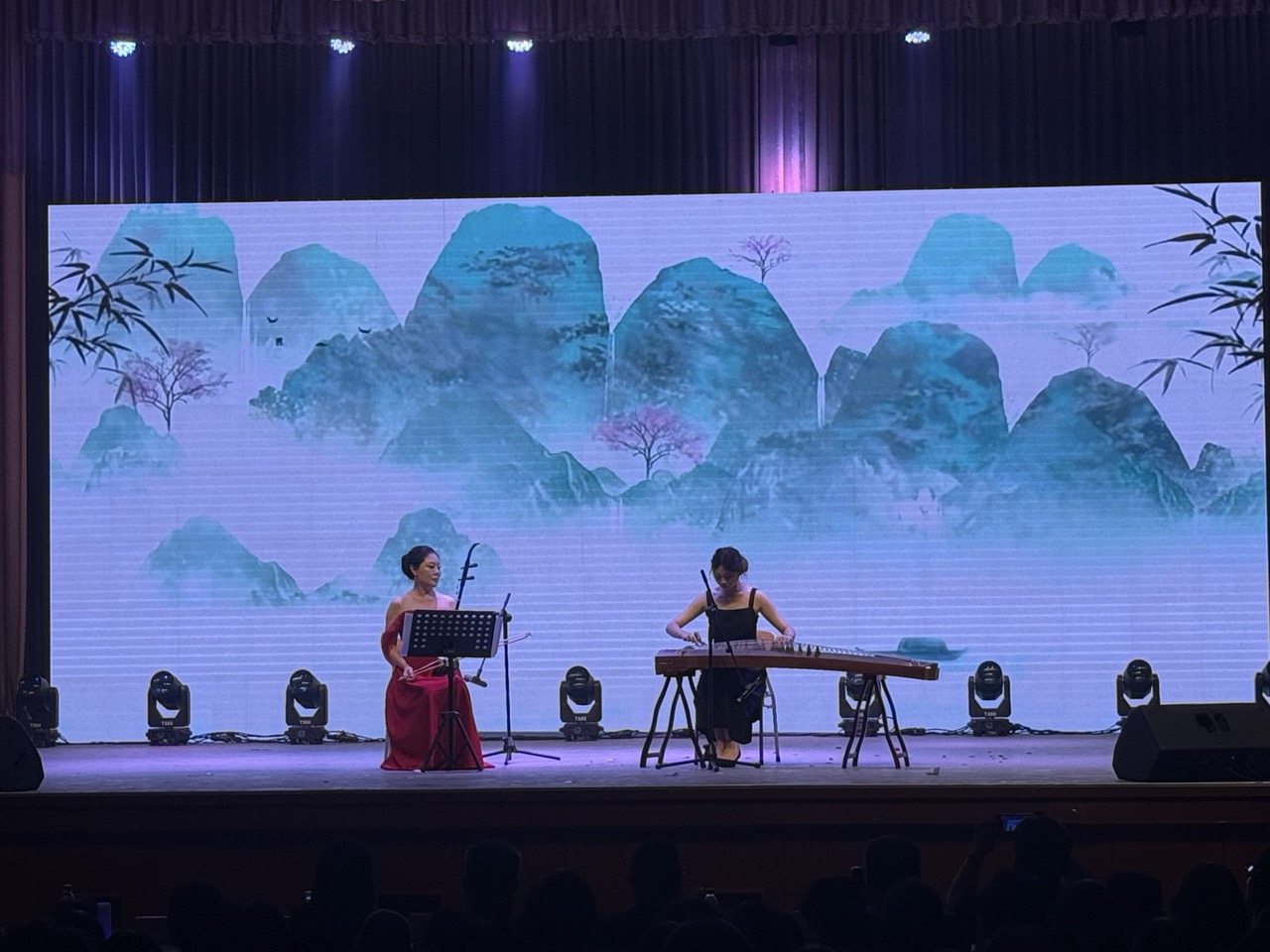 “美·共赴华章”篇章将晚会推向高潮,凸显了美育的多元与包容。少数民族同学朗诵《民族团结心 共铸中华情》勾勒出和谐共生的画卷之美。班主任王雅鸣老师深情寄语,引领同学们以一曲《水手》,吹响了风浪中前行的号角。张蕊蕊老师优雅的民乐《渔舟唱晚》与韩凯老师经典歌剧选段《我的太阳》同台辉映,一中一西,一阳刚一婉约,完美展示了音乐作为世界语言的无穷魅力,体现了美育在融汇古今、贯通中西中的桥梁作用。