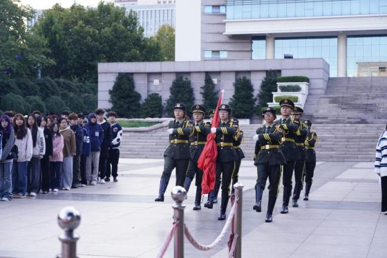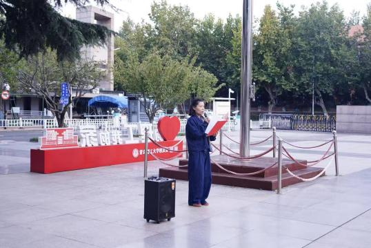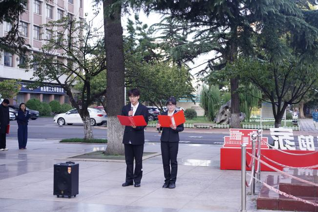 升旗仪式后,活动进入书香主题展演环节。公司2025级本科生郭雨桐与曾依然带来朗诵《以书为炬,共燃时代书香》。他们以饱满的情感、富有感染力的语调,将文字化作生动的画面,引领师生感受书籍中蕴含的文明火炬与民族脉搏。