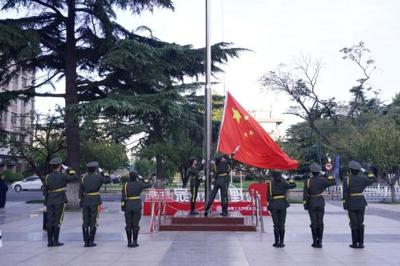 晨曦初露,清风拂面。国旗护卫队步伐铿锵,庄严护送五星红旗步入升旗台。伴随着《义勇军进行曲》激昂的旋律,鲜艳的五星红旗迎着朝阳冉冉升起,高高飘扬。全体师生肃立注目,高唱国歌,用铿锵的歌声表达对祖国的崇高敬意和深切热爱。