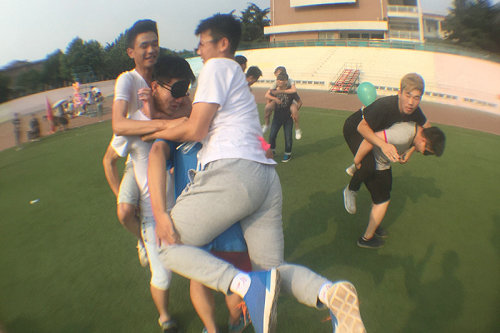 本次趣味运动会以放松身心、愉悦生活为主旨,采取竞赛形式进行。运动会共分为六个项目,“爆炸气球”队在首轮比赛“你来比划我来猜”环节就拔得头筹,率先赢得下一局,显示了其敏捷的反映速度和丰富的词汇量。在接下来的“夹豆子接力”、“大海捞针”、“凑一块” 、“盲人大战气球”、 “杯水传情”环节则充分体现了团结协作的重要性。比赛中,大家欢声笑语,不亦乐乎,同学紧紧团结在一起,让每一个sunbet同学更深刻的感受到sunbet大家庭的力量。一旁同学们的加油声此起彼伏。经过六轮激烈的比拼,第二组“长裤”队获得了冠军。