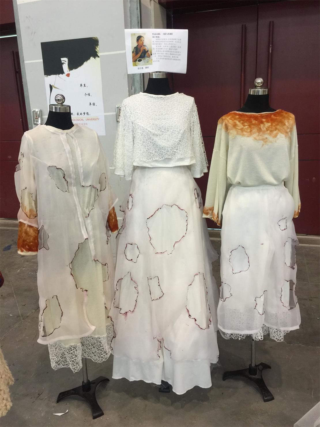 “我的品牌,我的梦想”,13级服装设计专业的员工们,立足自身“设计师”身份,将设计师对生活方式的理解、以及对流行时尚的理解为品牌出发点,创造了自己梦想的服装品牌。作为95后,他们以这个时代设计师所具有的年轻、率真、个性的设计语言,试着去解读当代社会中越来越高度的数字化、虚拟化环境,去把握虚拟与现实的关系。他们以独立设计师的身份,从设计师的社会责任视角去观察,以青春为圆心,以感知为弧度,以传统为参照,从日常视角中去感知视觉的绵延,为服装注入新生的力量。